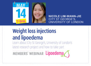 Nicole will give an update on the work of St Georges, talk about her role in the project, why she is interested in studying lipoedema,  what they hope to learn from the study and how people can take part.